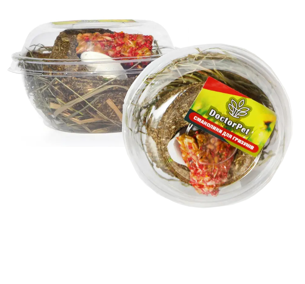 Смаколики в круглій пластиковій коробці Doctor Pet – це унікальний продукт, що одночасно є іграшкою, джерелом вітамінів та інструментом для гігієни зубів. Воно розроблене для шиншил, морських свинок, щурів, кроликів та хом'яків, забезпечуючи їх усім необхідним в одній порції.