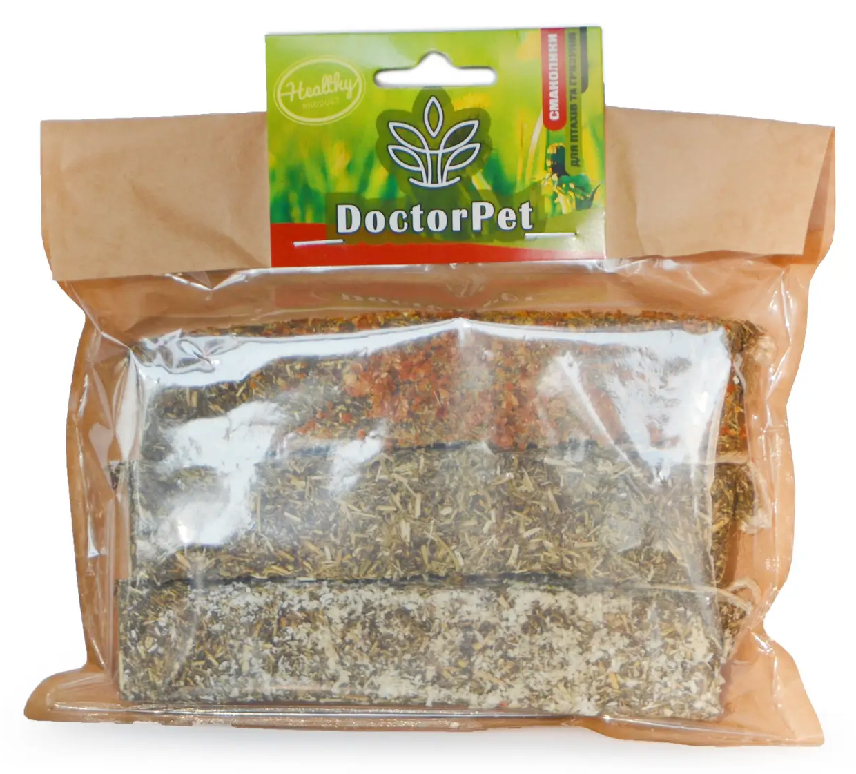 Трав’яні крекери Doctor Pet – це улюблений смаколик і розвага для домашніх гризунів, виконаний у трьох різновидах: з морквяною посипкою (додаткове джерело каротину, корисного для зору), з кокосовою посипкою 9смачне джерело енергії та клітковини), з квітами календули (природний імунопідтримуючий компонент). Основним компонентом є люцерна, яка забезпечує організм гризунів клітковиною, вітамінами та мінералами.