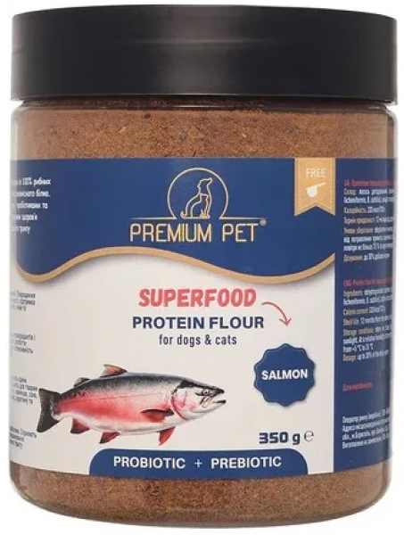 Протеїнове борошно з ПРЕБІОТИКАМИ та ПРОБІОТИКАМИ з лососем, 350 г, Premium Pet