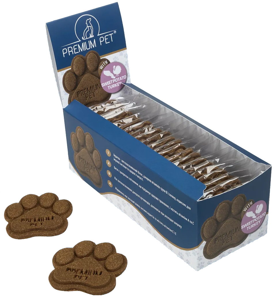 Печиво "Лапка" зі смаком індичка-батат, 24 шт, Premium Pet