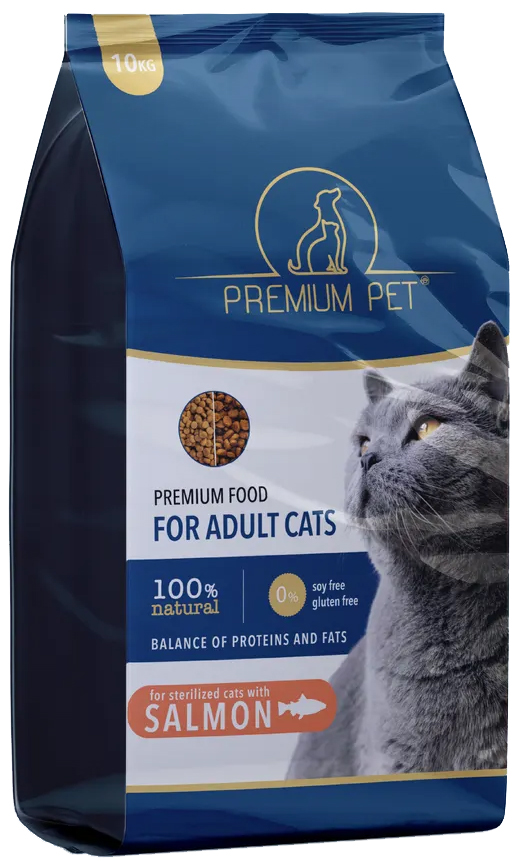Сухий корм для стерилізованих котів з лососем, 10 кг, Premium Pet