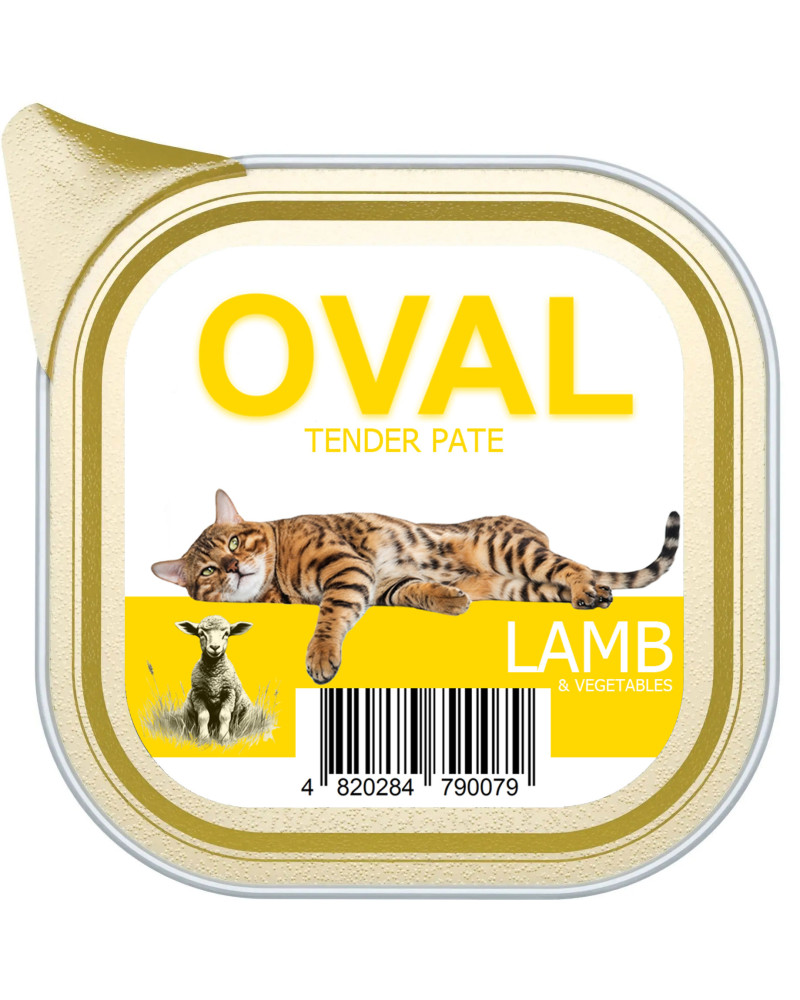 Паштет з ягням та овочами, OVAL – це неперевершений смак та користь організму вашого улюбленця. М'які м'які текстури. На сто відсотків лише свіже м'ясо без додавання консервантів, підсилювачів смаку та аромату. Корм виготовлений із інгредієнтів, призначених для харчування людини. Повністю збалансований раціон з мінералами та вітамінним комплексом.