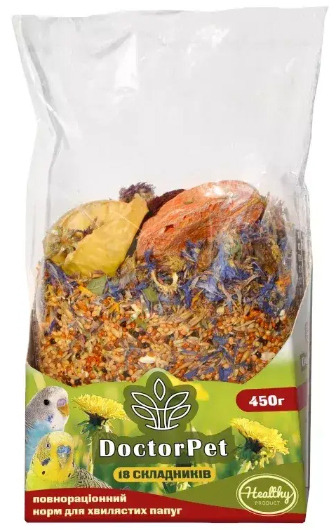 Корм для хвилястих папуг, 450 г, 18 складників, Doctor Pet