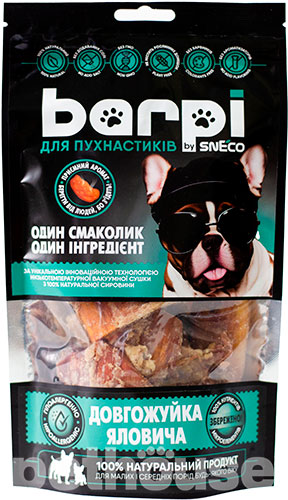 Натуральні сушені ласощі у вигляді яловичого вим’я. Корисний смаколик задовольняє потребу у жуванні та урізноманітнює звичайний раціон з користю для здоров’я улюбленця.