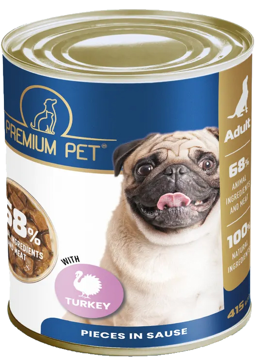 Шматочки в соусі з індичкою Premium Pet – це повнораціонний консервований корм для дорослих собак.